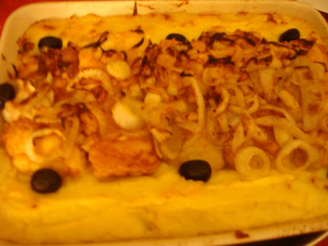 Este ano, para além do bacalhau cozido para os mais tradicionais (os homens mais velhos), fiz um "à casa”, fritando lombos de bacalhau, passados por ovo batido e farinha, e dispondo-os em travessas (éramos 12 comensais), acompanhados por puré de batata, com cebolada por cima e maionese para gratinar no forno.